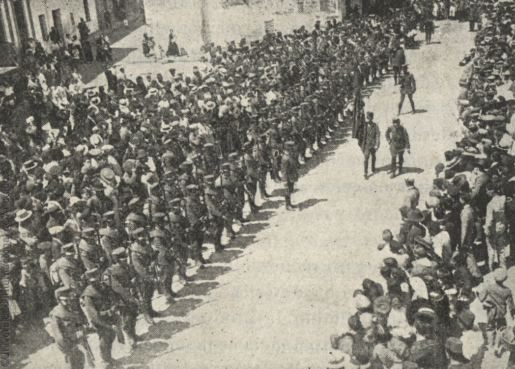 Pie de foto: El pueblo saludando a la insignia de la patria