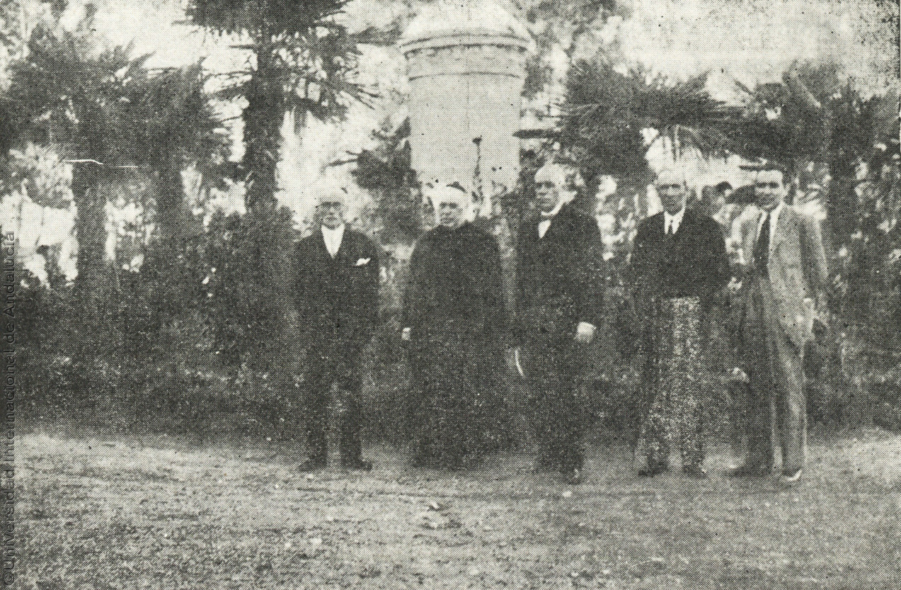 Pie de foto: Don Rafael Fabián, este gran español, cuando visitó por primera vez La Rábida, nos prometió volver y ha cumplido su promesa. Acompañado del auditor de la Rota, ilustre padre Valdepares, vinieron desde Sevilla a pasar un días en los lugares Colombinos