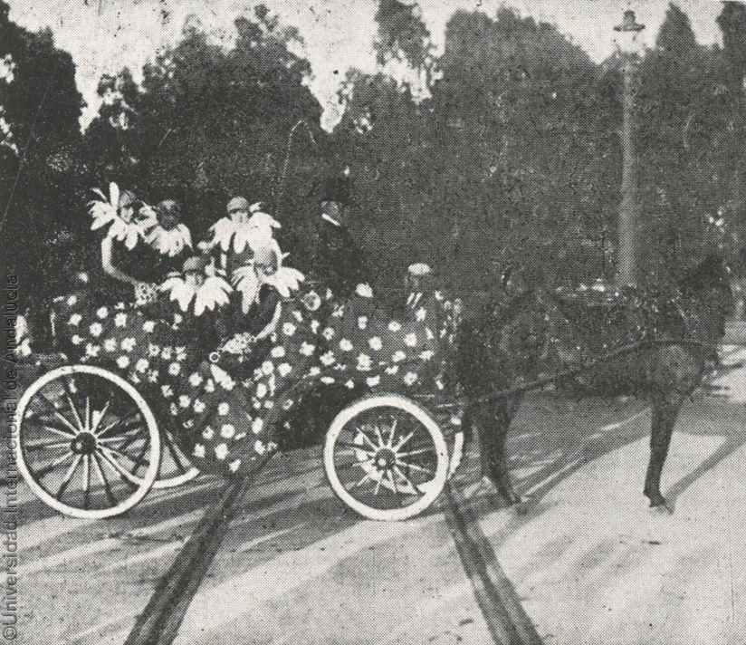 Pie de foto: Coche premiado en la Batalla de las flores, Huelva, 3 de agosto