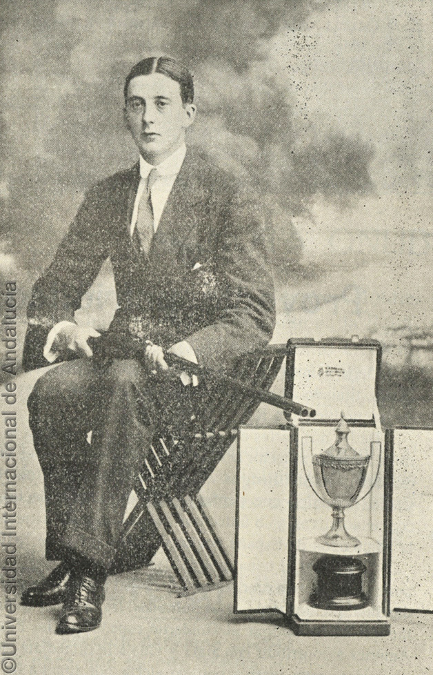 Pie de foto: El distinguido joven D. Francisco Pérez de Guzmán, que ganó una Copa de plata en el Tiro a pichones de Ayamonte