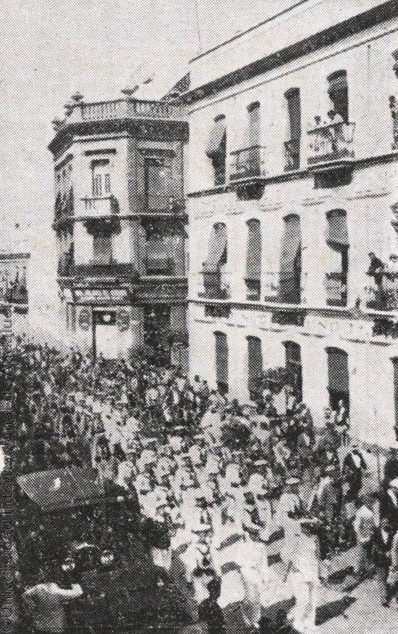 Pie de foto: El guión de la Carabela Santa María a su paso por la calle Sagasta