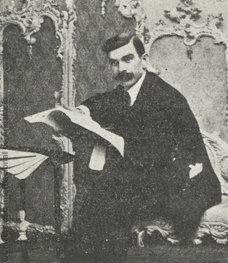Pie de foto: D. Francisco Rodríguez Hidalgo, pintor escenógrafo, fiel intérprete del decorado para los Juegos Florales Colombinos