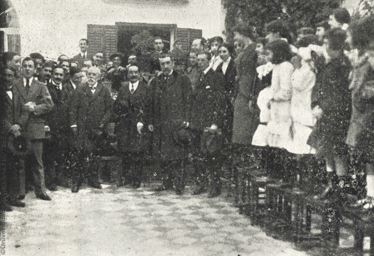 Pie de foto: El señor Burgos en el domicilio de la Sociedad Colombina (casa de la Cultura). Las niñas de la Academia de Música (casa de la Cultura) que recibieron al Ministro arrojándole flores