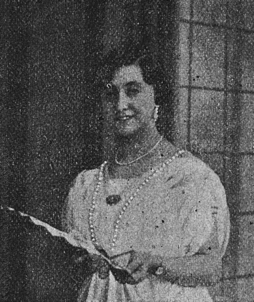 Pie de foto: Srta. Modesta Ruifernández, gentil dama que figuró en la presidencia del certamen Colombino
