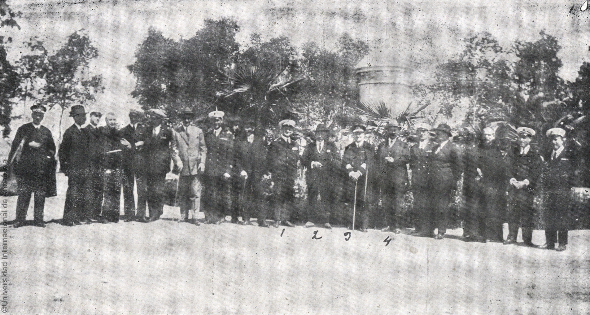 Pie de foto: En la cruz de La Rábida 1. El Comandante del Leone 2. El Presidente de la Colombina 3. El Comandante de Marina 4. El Vice-Cónsul de Italia. Foto Calle