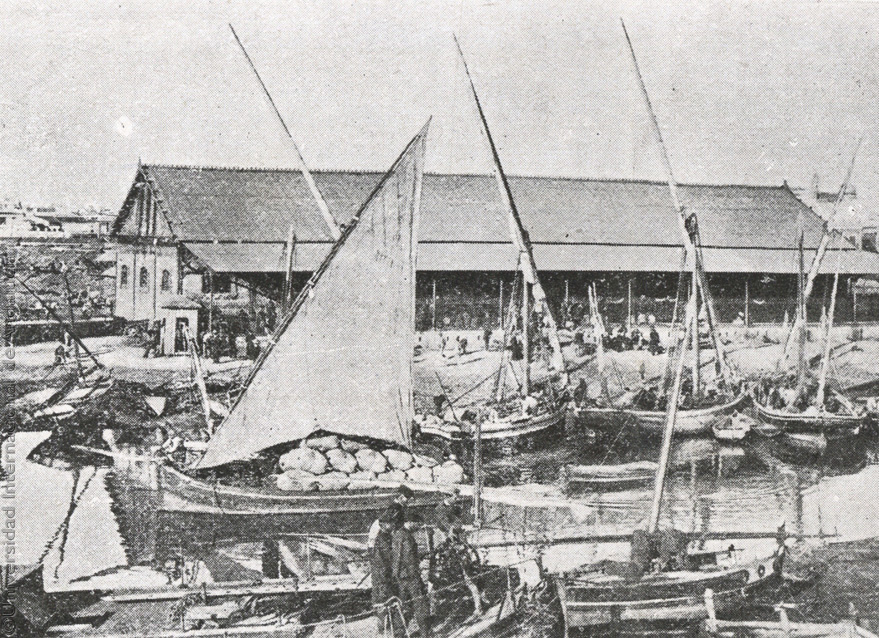 Pie de foto: Huelva, detalle del Puerto, barcos de cabotaje