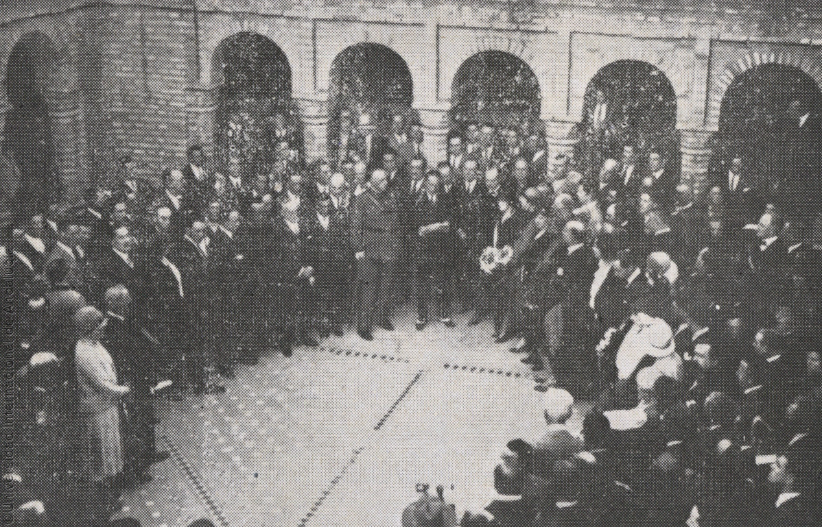Pie de foto: El Duque de Alba leyendo su discurso en La Rábida