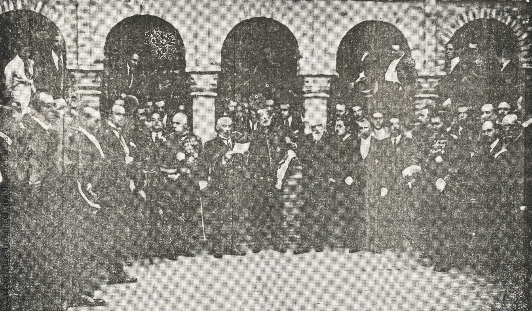 Pie de foto: En La Rábida, el Comandante Franco se encuentra con los aviadores que le despidieron