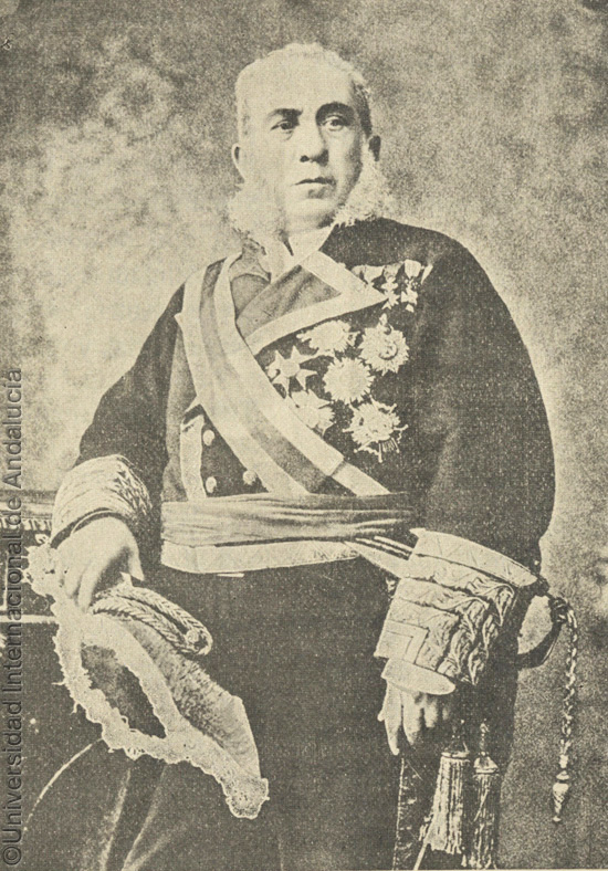Pie de foto: Excmo. Sr. D. Luis Hernández Pinzón y Álvarez, Almirante de la Armada Española, Presidente y Protector de la Sociedad Colombina Onubense