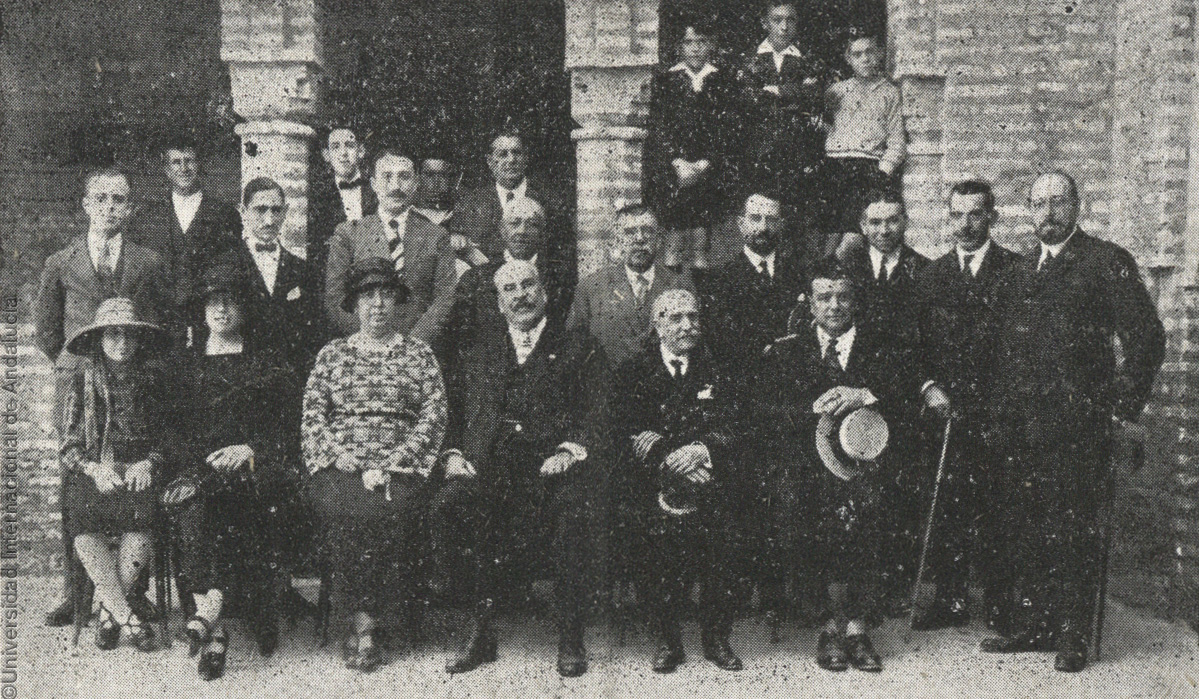 Pie de foto: Los Colombinos en el patio mudéjar de La Rábida, 12 de octubre