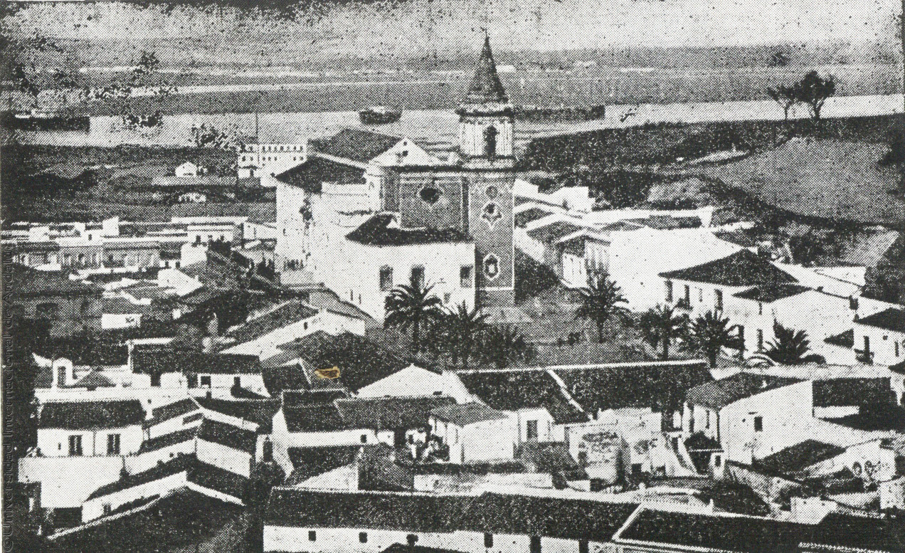 Pie de foto: Vista parcial con la iglesia matriz de San Pedro (antigua mezquita), Huelva